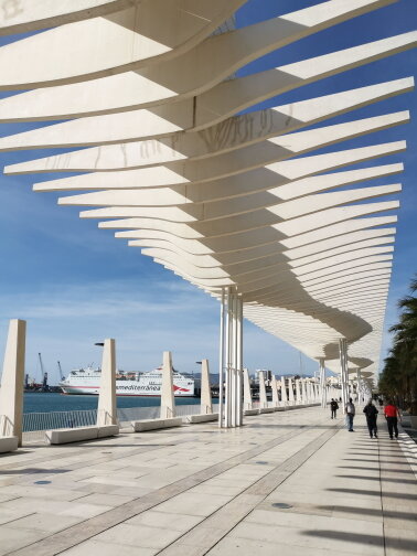 Also visit the giant port of Malaga, with its large and modern promenade, Passeo del Muelle uno, with bars, restaurants and this is where the Center Pompidou is located. In the middle of the walk you have the Palmeral de las Sorpresas which is an area with palm trees and art. if you visit the city by car, just like us, this is the best parkink to park, right under the Pompidou Center. The name of the Park is Parking Muelle Uno.