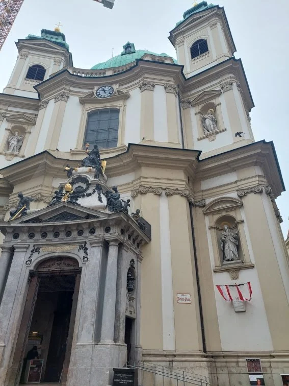 Walk along the Naschmarkt area and at the end of the boulevard towards the historic center you'll find the giant baroque church of Karlskirche, where you can also watch regular Mozart's Requiem and Vivaldi's Four Seasons concerts.